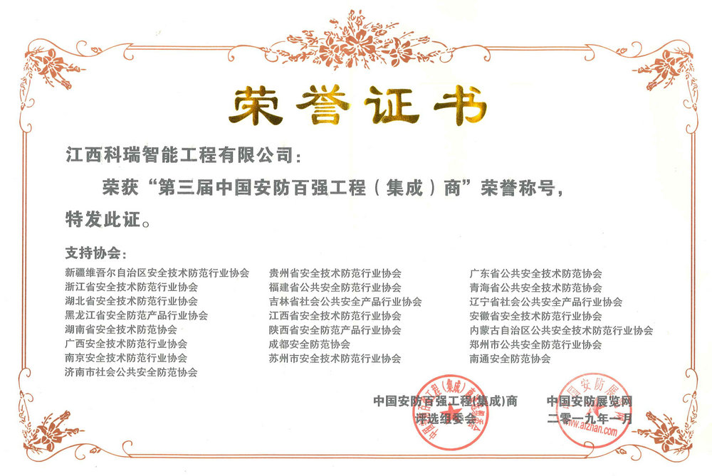 榮獲“第三屆中國安防百強工程商”、“2018年江西省優(yōu)秀安防工程企業(yè)”榮譽稱號!